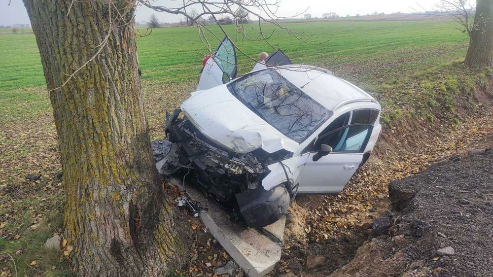 Skierowani na miejsce policjanci ustalili wstępnie, że pojazd zjechał na pobocze i uderzył w drzewo. 51 letnia kierująca z podejrzeniem urazów wewnętrznych została przetransportowana helikopterem Lotniczego Pogotowia Ratunkowego do szpitala w Bydgoszczy. Informacje o stanie zdrowia kobiety na chwilę obecną nie zostały przekazane.