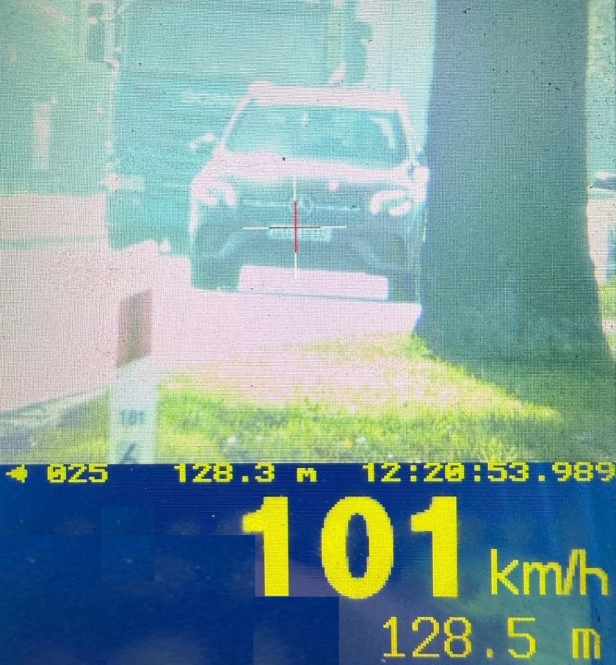 Kierowca Mercedesa GLB został zatrzymany w Strzelnie po przekroczeniu prędkości do 101 km/h. 29-letni mieszkaniec Warszawy otrzymał 1500 zł mandatu, 13 punktów karnych i stracił prawo jazdy na 3 miesiące.